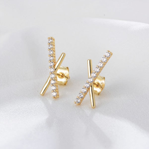 Our Kirby Earrings are a playful mix of intersecting straight lines and textures, featuring 18K gold and Cubic Zirconia with a stud closure. Pair with a few dainty studs if you have multiple piercings. Hand-crafted using 18K gold plated sterling silver.